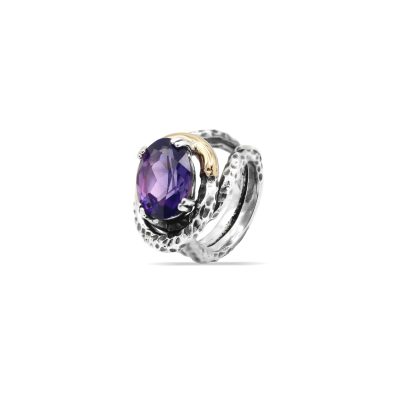 Anello in argento con rifinitura circolare in bronzo e idrotermale ametista MADE IN ITALY