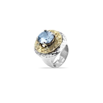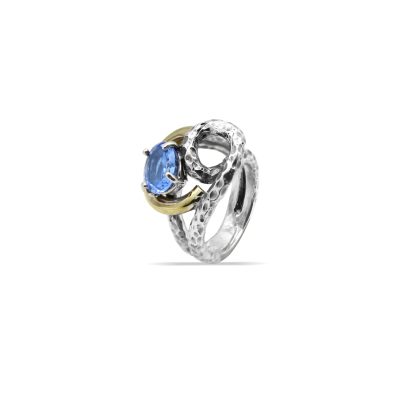 Anello in argento e bronzo con pietra idrotermale blu MADE IN ITALY
