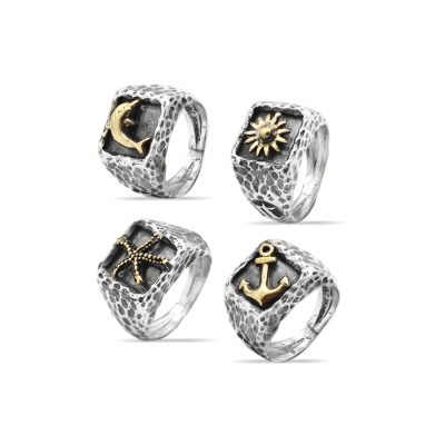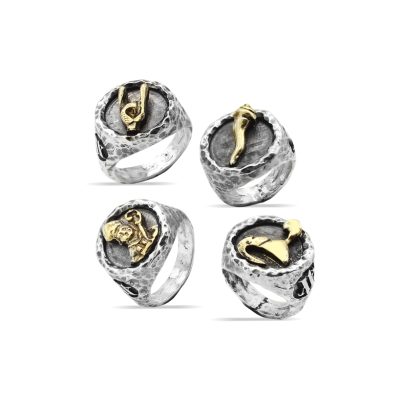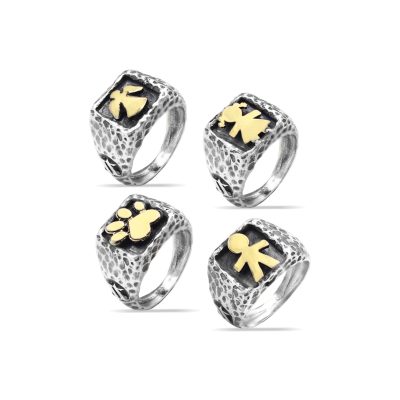 Anello in argento con simboli in bronzo MADE IN ITALY