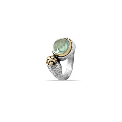 Anello in argento con motivo floreale e pietra idrotermale gialla MADE IN ITALY