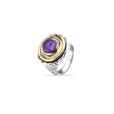 Anello in argento e bronzo con pietra idrotermale ametista MADE IN ITALY