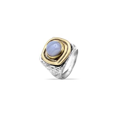 Anello squadrato in argento con girandola in bronzo e calcedonio MADE IN ITALY