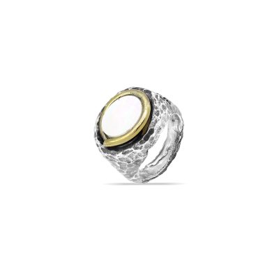 Anello in argento con rifinitura in bronzo e madreperla MADE IN ITALY