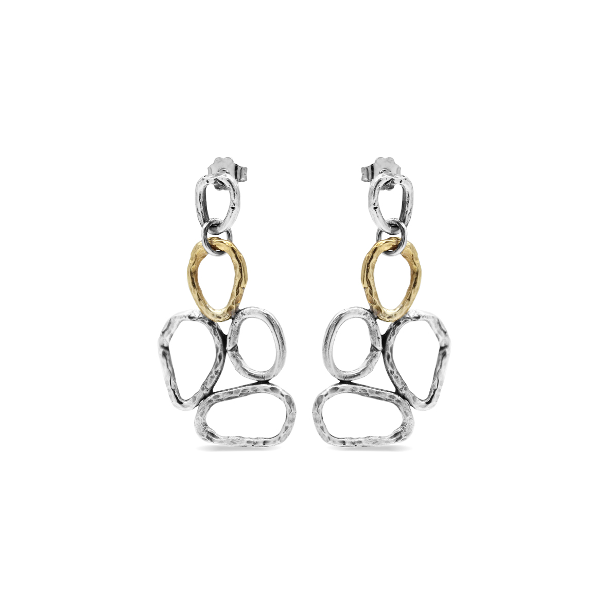 Orecchini in argento e bronzo con cerchi asimmetrici, realizzati a mano. MADE IN ITALY